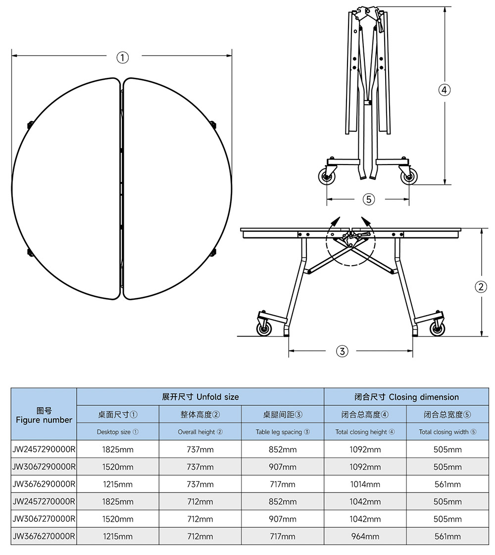 ●產品功能:整張桌子可以平行折疊,極大節省儲存空間,物理連桿設計簡易折疊