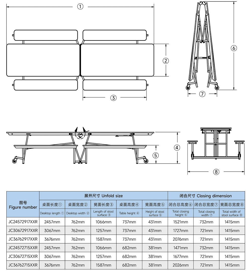 ●產(chǎn)品功能:整張桌子可以平行折疊,極大節(jié)省儲(chǔ)存空間,機(jī)械扭簧設(shè)計(jì),更容易進(jìn)行展開(kāi)或折疊作業(yè)